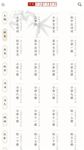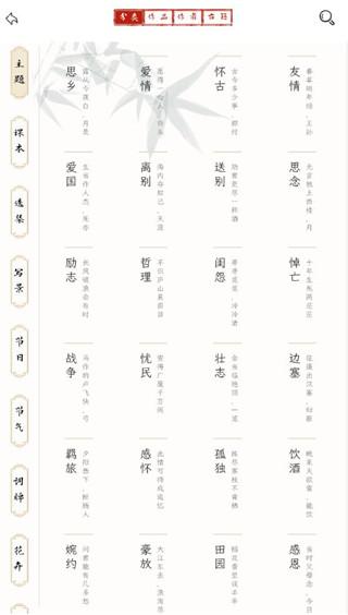 4、书阁分类非常的详细,有主题、课本、选集、写景、节日、节气等