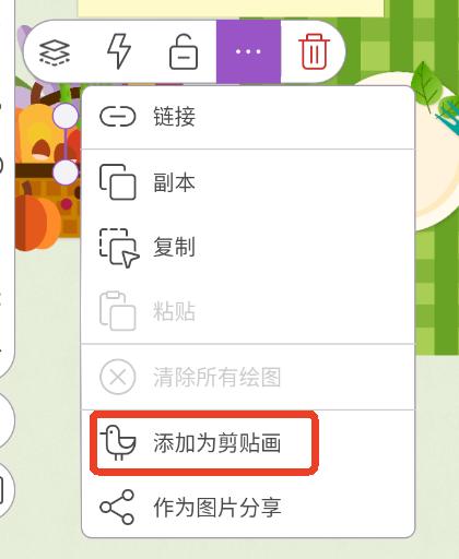 7、如果发现喜欢的小素材可以添加为剪贴画,下次创作的时候可以使用,在剪贴画栏里找到。