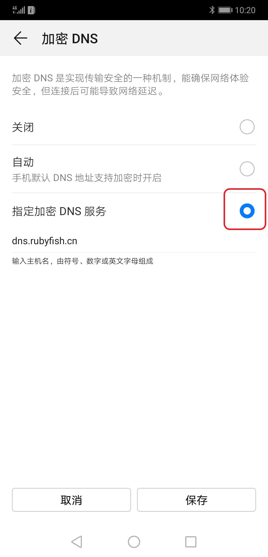第四步:在 "加密 DNS" 界面最下方点击 "保存" 后就一切配置好了