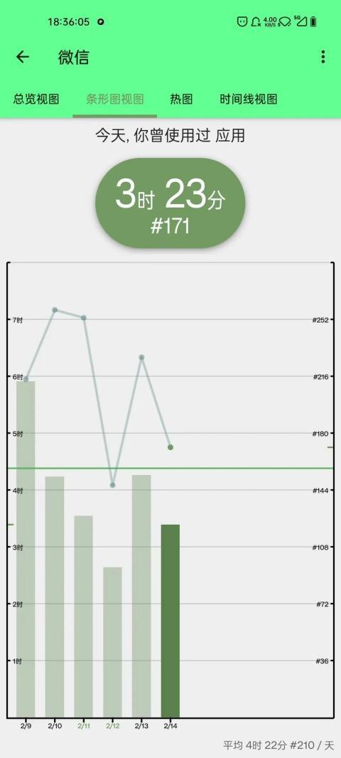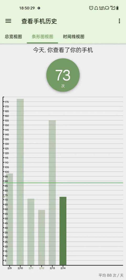 这个功能能以条形图或日历视图显示你每天查看手机的次数。