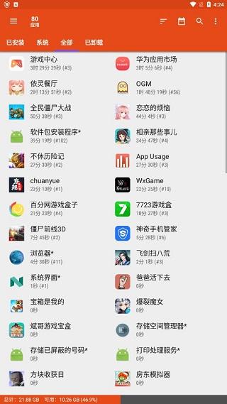 这个功能可以按照应用名称、使用时间、访问次数、更新次数或大小来列出所有应用,让你轻松快速卸载应用。