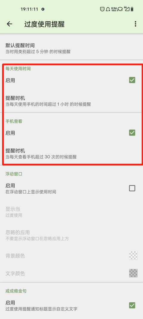 软件里面还有个过度使用提醒,使用达到一定时间后就会主动提醒我们减少手机使用时长。