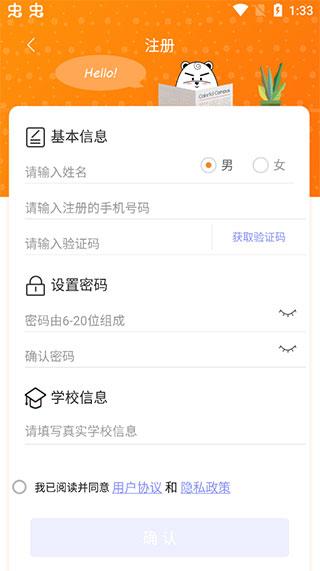 1、新用户需要使用手机号进行注册,填写基本信息、设置密码、学校信息;