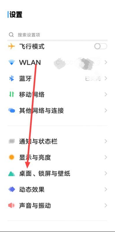 1、打开手机上的设置,接着点击下方的【桌面、锁屏与壁纸】。