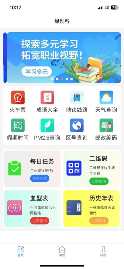 绿创客不仅仅是一个学习平台,它是您探索、发展和实现职业梦想的生动场所。我们深知在现代职场中,不断学习和不断进化是成功的关键,为个人和企业提供世界一流的学习资源,以帮助用户取得更大的成就,挺实用的一个平台,可下载试试。
