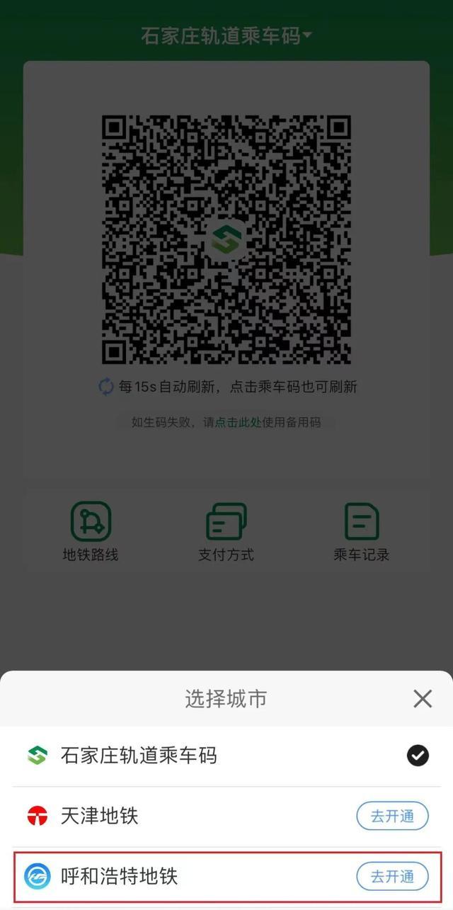 在下侧弹出的页面点击“呼和浩特地铁”右侧的“去开通”。