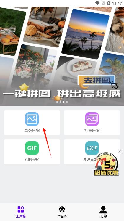 3、这里我们点击单张压缩