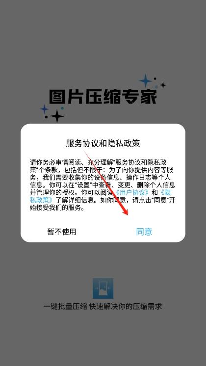 2、进入后阅读并同意ImgMeta图片压缩专家app的用户协议