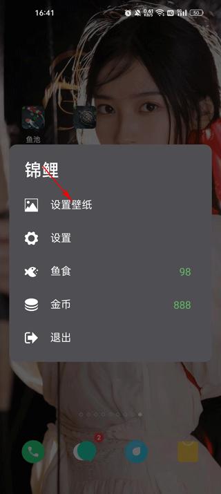 点选"选择壁纸",并在动态壁纸列表中选择"鱼池"