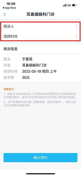 6、填写好就诊人和时间,点击【确认预约即可】。