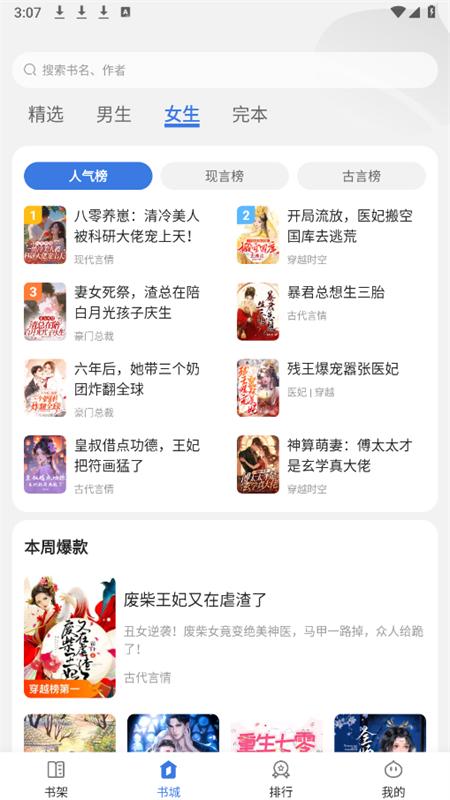 丰富的分类:涵盖了现代言情、古代言情、异能、悬疑、都市修仙、武侠、仙侠、商战、赘婿、鉴宝、洪荒、科幻、末世网游、竞技、废柴、玄幻等多个类别,满足不同用户的阅读偏好。