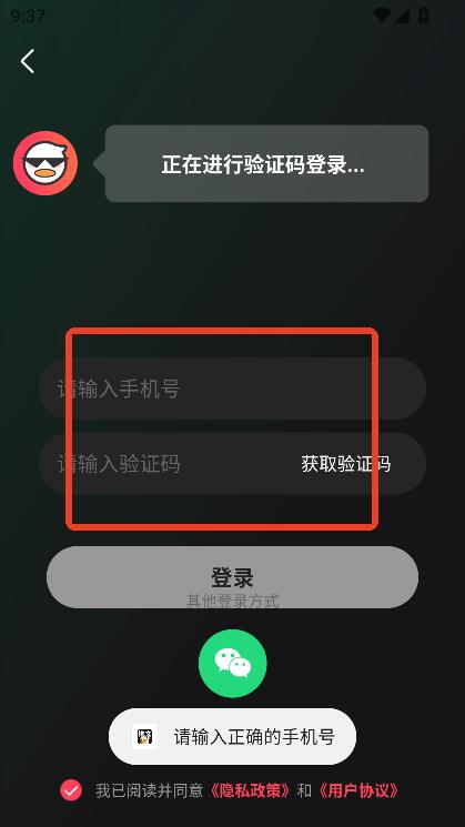 直接填写手机号,接受验证,即可登录注册成功