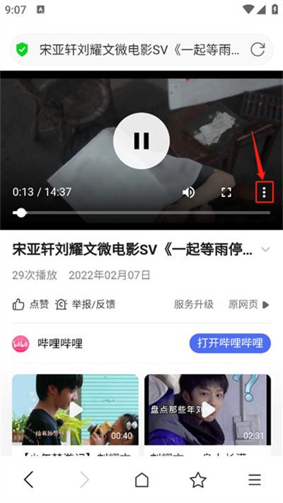 3.在视频播放界面,点击右下角的三点菜单图标。