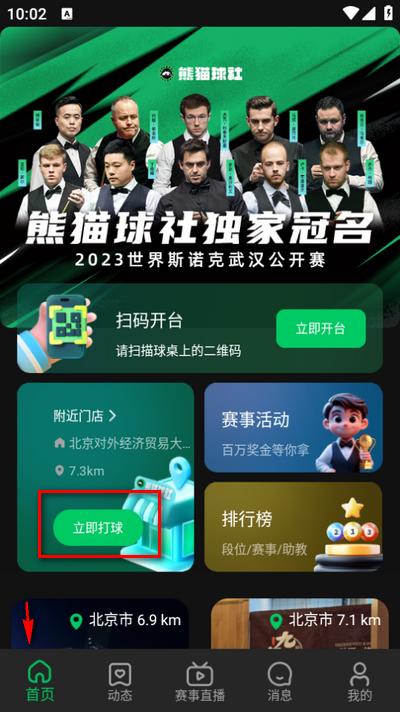 1、打开软件,点击首页,再点击立即打球
