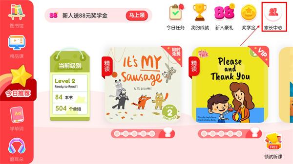 1、下载进入千千妈妈app,点击进入右上方的“家长中心”;