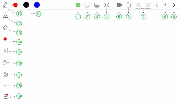 19、菜单:投屏互动教学功能入口,同时包含微课管理、功能设置、使用帮助、会员服务