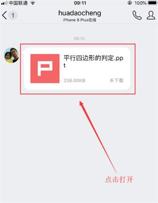 1、将课件发送到QQ/微信聊天窗口中,点击打开课件