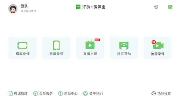 一、打开汗微微课宝可以看到有横屏录课、竖屏录课、直播上课等多项功能