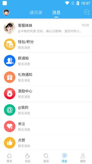 5、还可以在“消息”界面查看论坛通讯录消息和私信哦!
