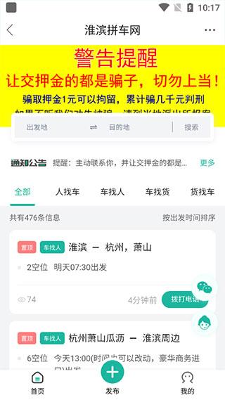 4、直接登录“淮滨拼车网”,可以看到很多“找车”“找人”“找货”等相关的拼车信息,需要注意让交押金的都是骗子!