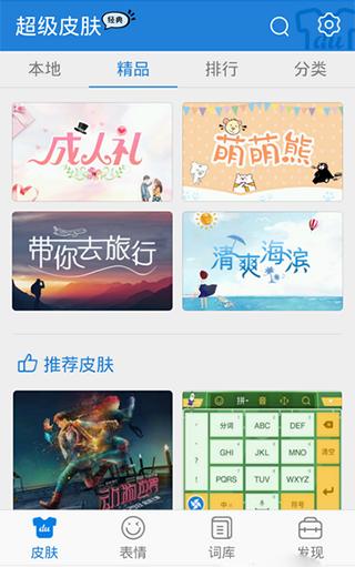 3、点击之后,输入法就会联网打开超级皮肤的页面。在这个页面中,我们可以滚动屏幕,慢慢查找自己所喜欢的皮肤。