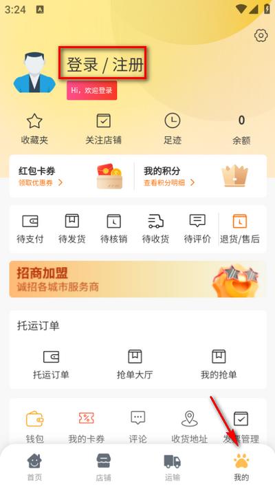 2、点击我的,再点击上方登录