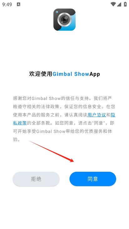 2、首先阅读并同意gimbal show的用户协议