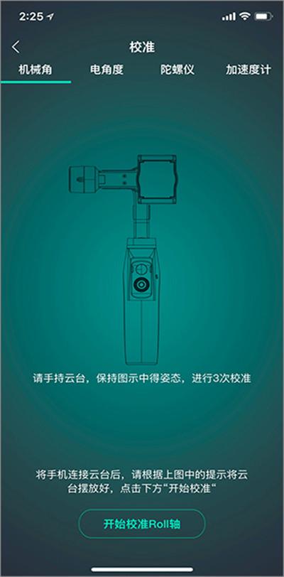 4.这里需要强调很关键的一点,那就是连接后如稳定器不平衡则需要手动校准,设备连接后点击页面中的图片进入校准页面。