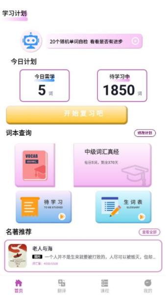 2、进入到首页选好单词书后可以开始学习计划的制定