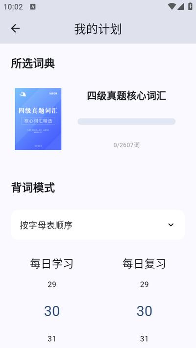 自定义学习计划:用户可以根据自己的需求设定每天学习和复习的单词数量,以及学习时间,软件会在设定的时间提醒学习。