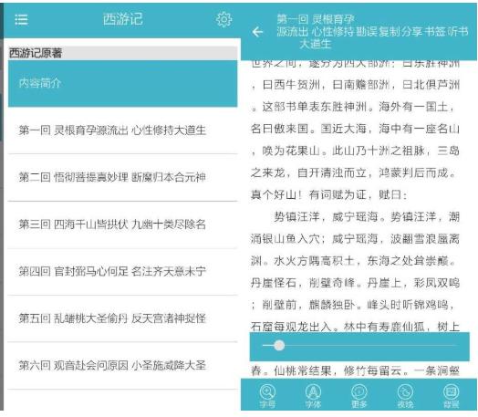 支持夜间阅读模式,而且设置字体与字号更为方便。