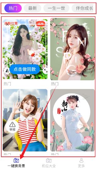 1、打开软件进入到一键换背景板块可以看到许多的模版