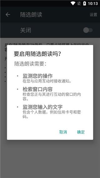 3、针对搭载android10并使用深色主题的设备增强了随选朗读功能支持。