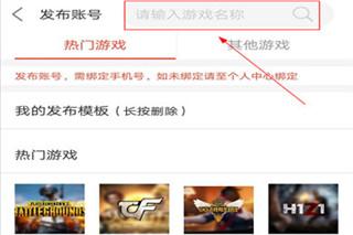 2、在发布账号平台中选择出租的游戏类型,可以是端游也可以是手游,只要你的游戏账号有价值都可以出租,如果游戏比较冷门也没有关系,可以在最上方输入游戏名称,查看对应的游戏。