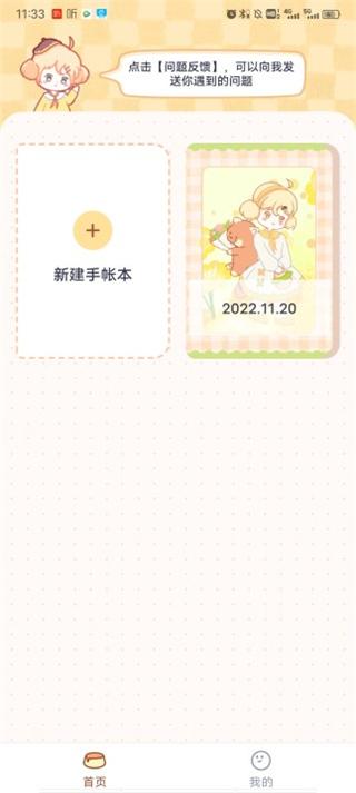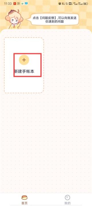 1、在本站下载安装并打开布丁手帐app,进入软件后点击创建手账。