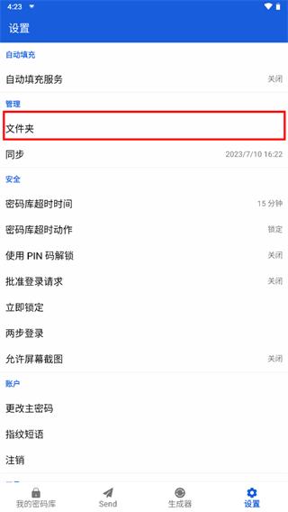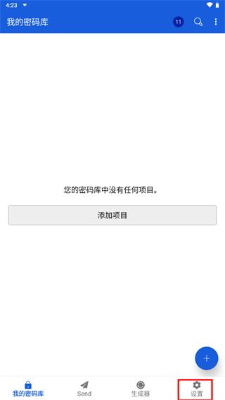 在您的 Bitwarden Android 应用程序中,点击 设置选项卡位于屏幕底部。