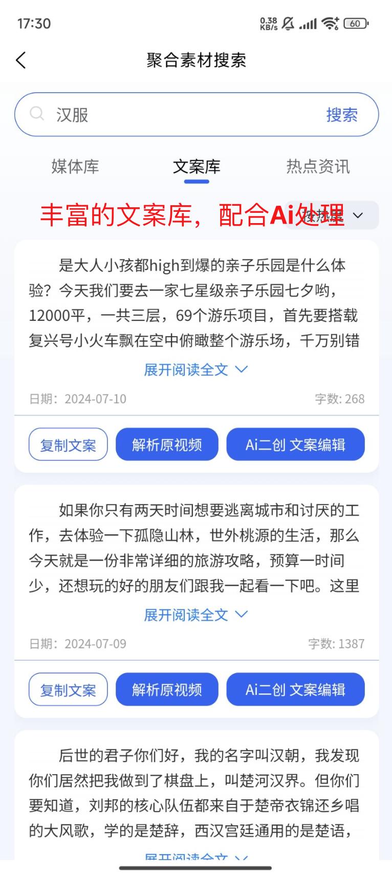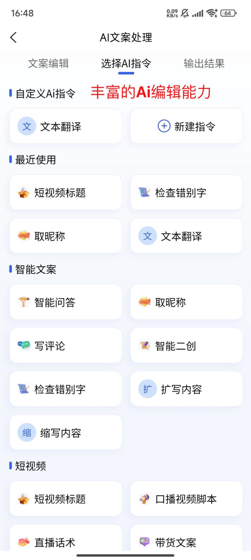 文案提取:从各类素材中提取文案,方便用户编辑和复用。