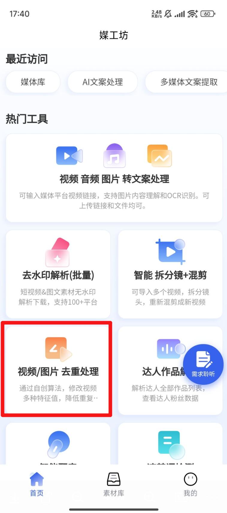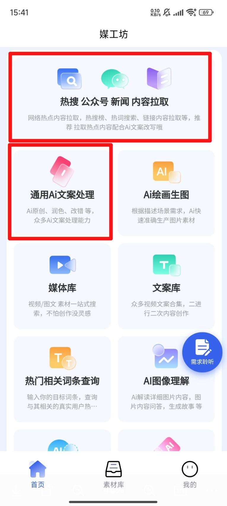 专门为自媒体用户打造的一款实用工具箱软件,媒工坊app拥有丰富的功能,整合了非常多实用的工具,手机上查找素材非常方便,可以输入媒体平台的视频链接,将图片内容进行识别,然后ai智能拆分操作,帮你去除短视频的水印,全能的ai文案编辑功能,短视频转成优质原创图文等等操作。