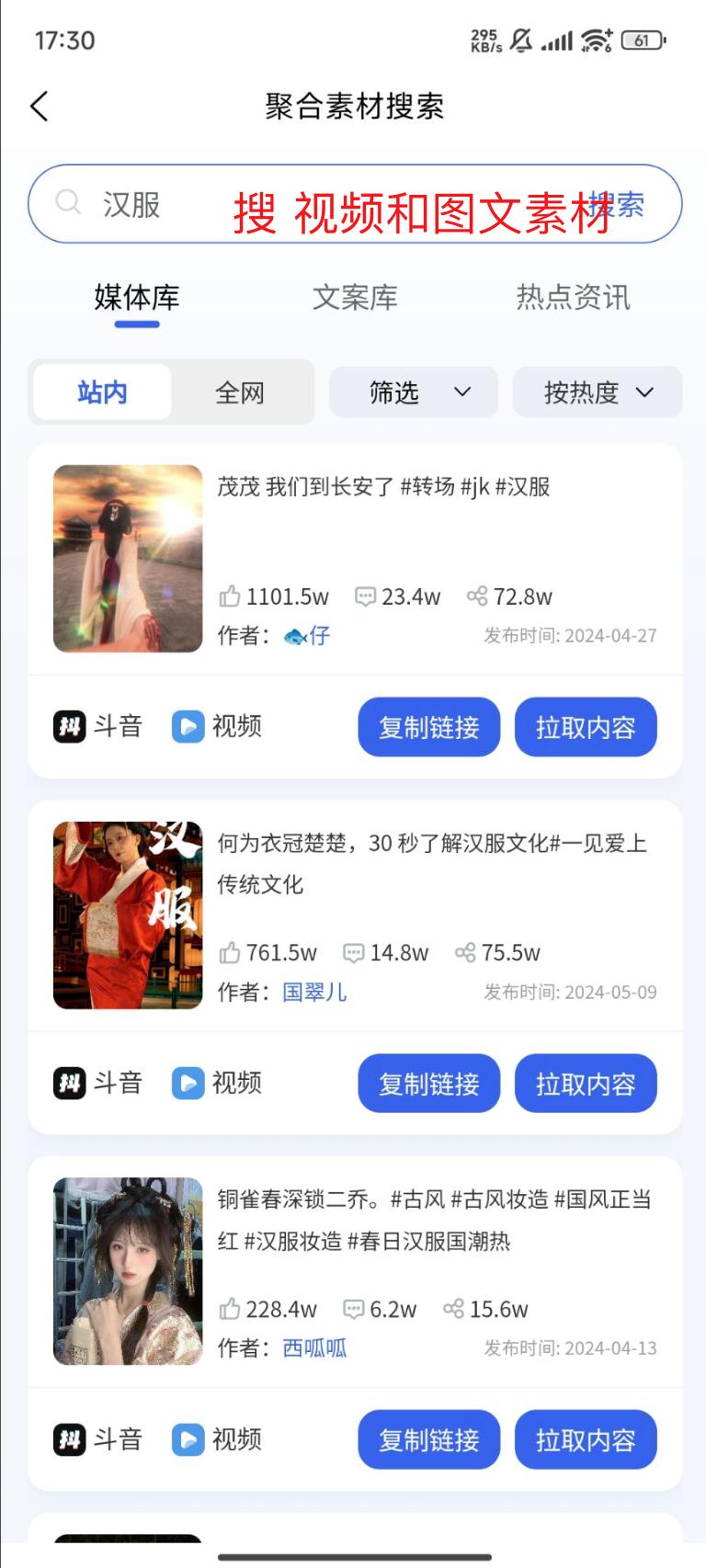 视频/图文 素材一站式搜索,不怕创作没灵感