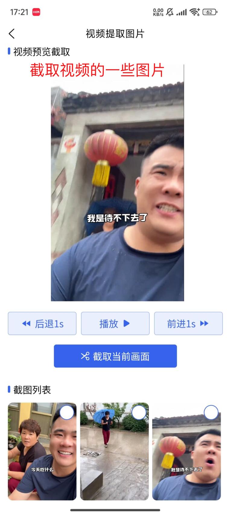 3: 取到的原视频,先进行视频截图,选中视频的某一些帧,截图保存到手机相册。