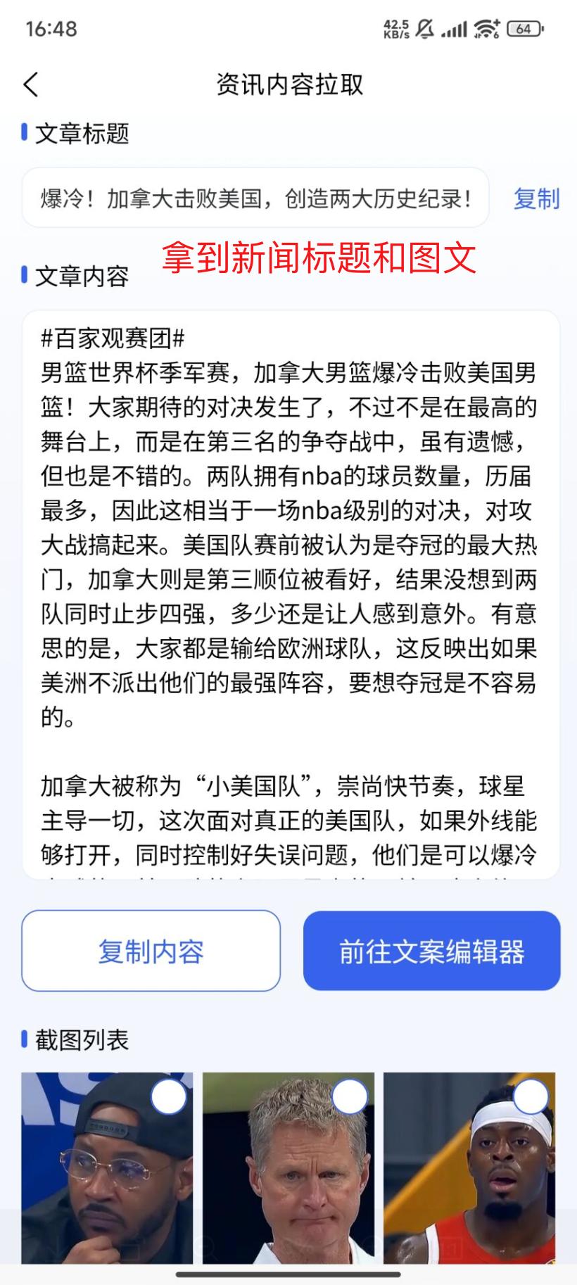 5:到这里就已经拿到了 文本内容 + 对应图片了,这就是一套文案,因为是视频内容,所以对于文章平台来说,肯定是原创的,内容也是抖音视频的高质量。这个文案可以同时发布多个平台,获取多份曝光和收益。