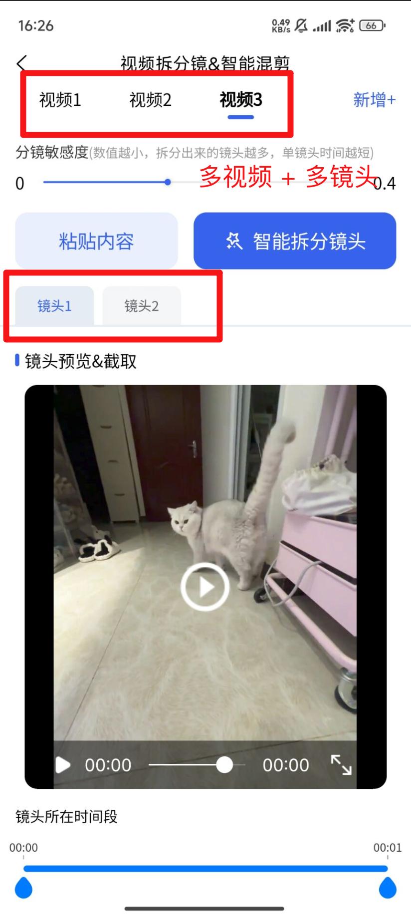 可导入多个视频,拆分镜头,重新混剪成新视频