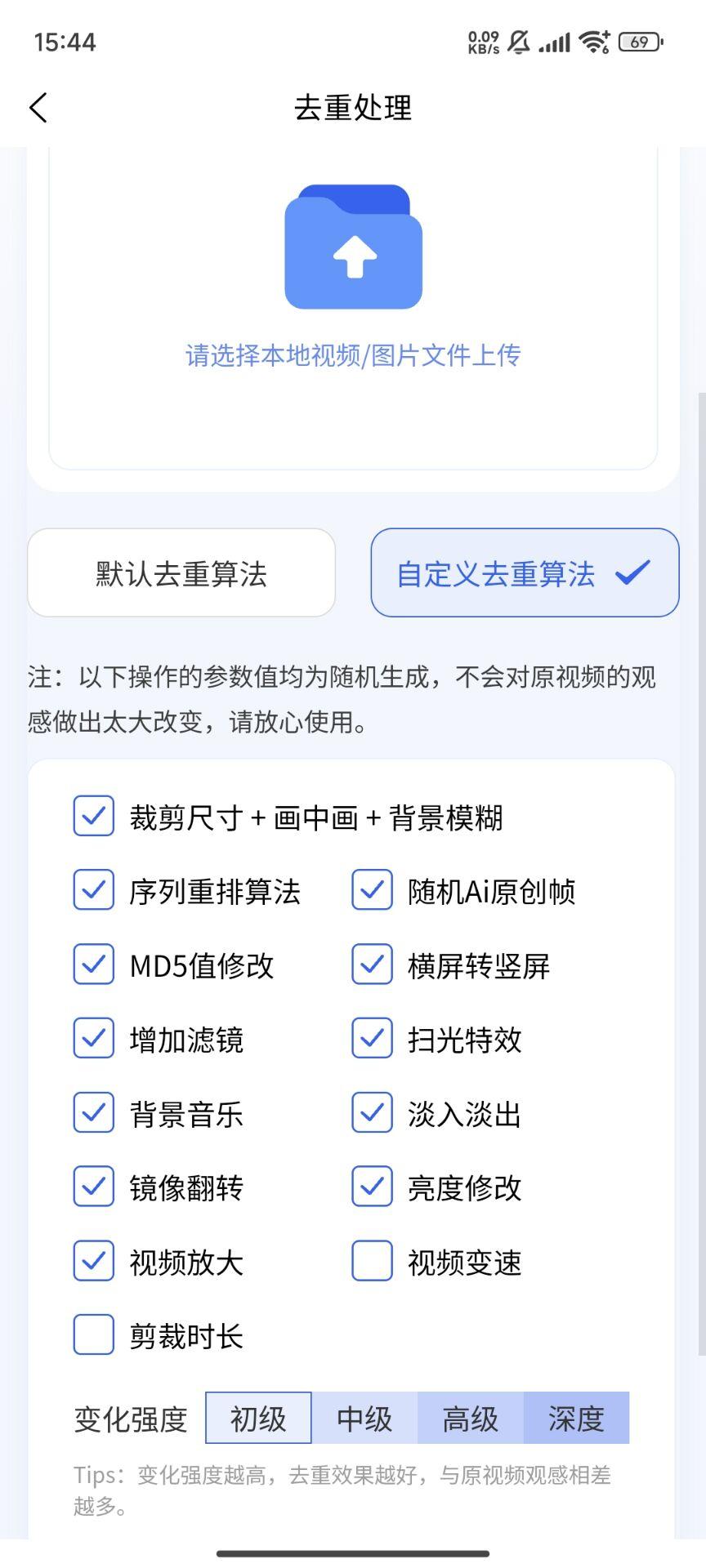说明:上传任意视频,自动修改md5值,视频 光线、亮度 等等众多参数,轻松过原创。
