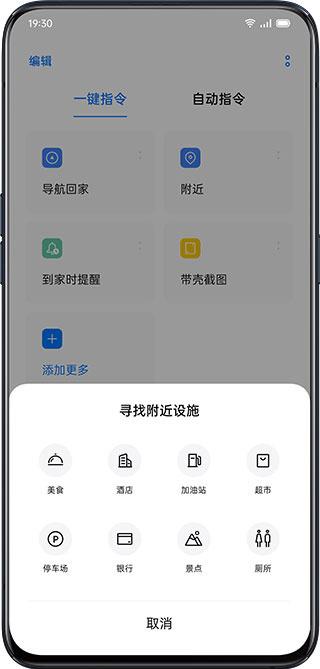 打开「小布指令」,你可以设置「导航回家」、「附近」、「到家时提醒」、「带壳截图」等一键指令。