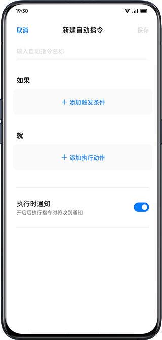系统已经预设了几种常用指令:深夜优化手机系统;连接车载蓝牙时打开驾驶模式;到家打开手机无线网;到公司打开手机静音。