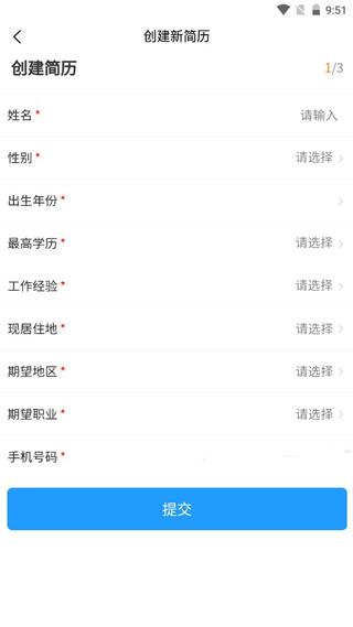 2、平台能够为你提供简历模板,只需按照要求即可填写个人简历信息。