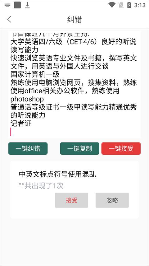 准确率还不错,软件是免费的,可以直接帮你对文本进行纠错,支持一键纠错功能,中英文标点符号使用混乱都可以帮你检测出来,还要什么自行车。