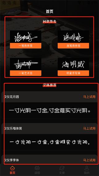 1、下载并进行安装后即可运行使用,在主界面中即可看到各种的字体和不同的字体签名设置;