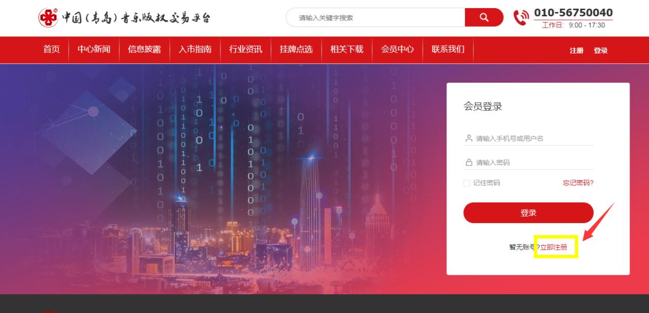 1、登录[中国(青岛)音乐版权交易平台]官网