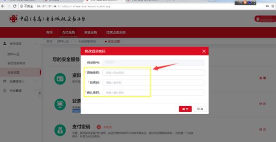 3.2老用户首次登录系统后,需要先修改登录密码;点击首行菜单栏[会员系统],点击左侧导航栏[会员信息],点击[安全设置],点击“登录密码”选项后面的[修改]按钮,进入修改页面,输入相关信息后点击[确定],即完成密码修改。